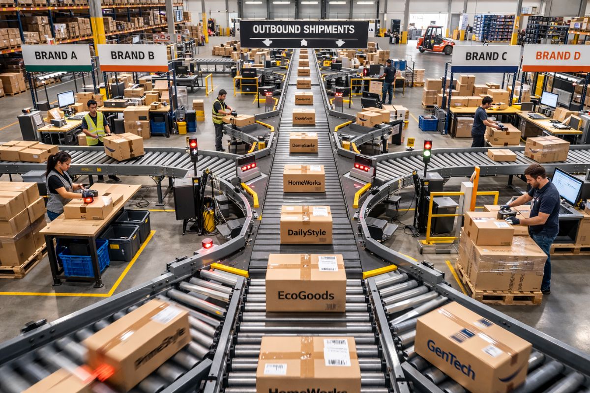 Look closely at how modern fulfillment actually works. Multiple brands share the same infrastructure. Orders from different companies move through identical systems. Transportation is coordinated across aggregated volume, which drives efficiency that no single retailer could achieve alone.